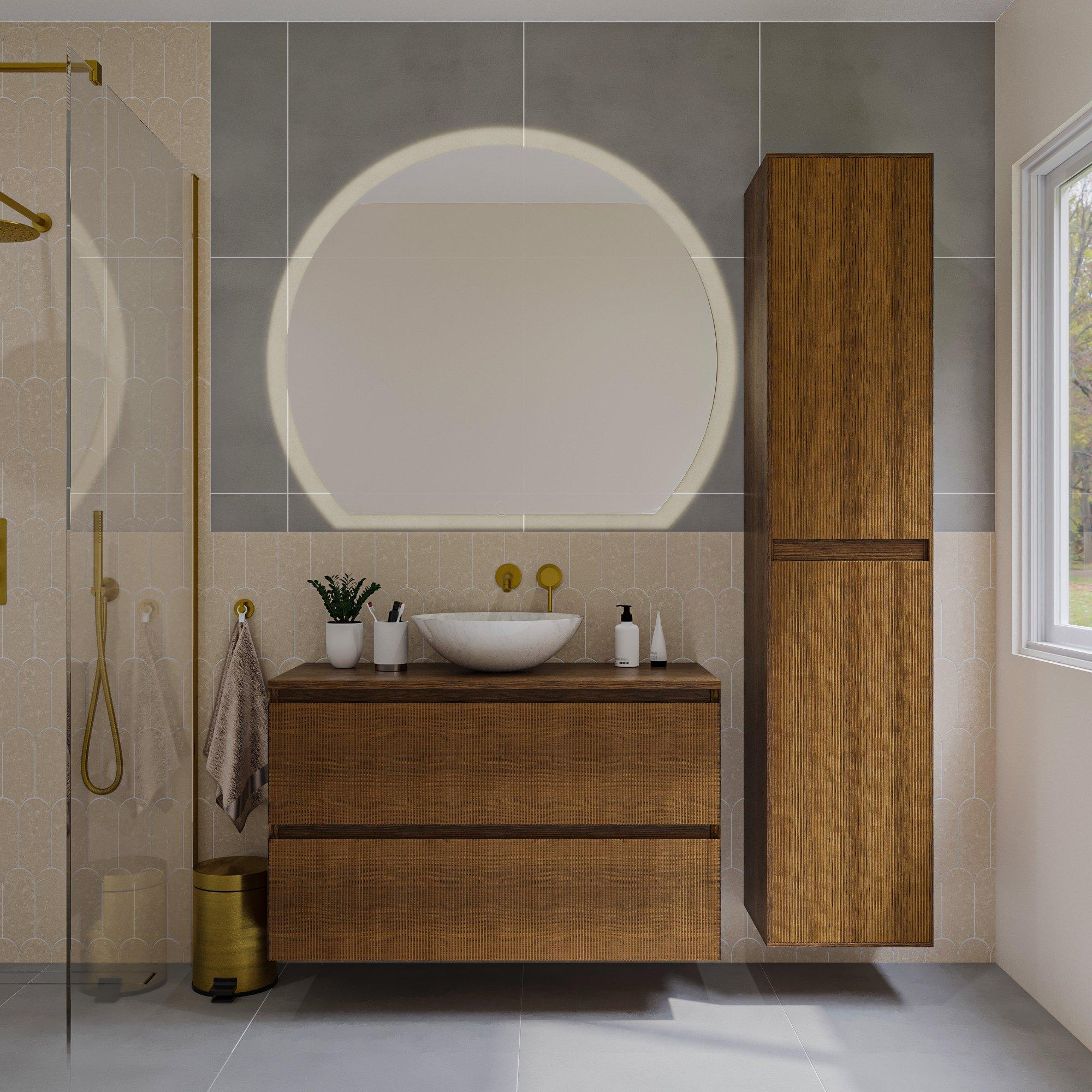 La couleur chaude Walnut pure et le chêne naturel donnent à cette armoire une apparence authentique et luxueuse. Le motif vertical nervuré ajoute un détail subtil qui confère au meuble un look unique et raffiné. Vous ajoutez ainsi facilement une touche d'élégance à votre salle de bains, sans qu'elle soit trop dominante. Ce meuble s'adapte parfaitement à divers styles d'intérieur, du moderne au campagnard, et crée une atmosphère harmonieuse où vous vous sentez complètement chez vous.