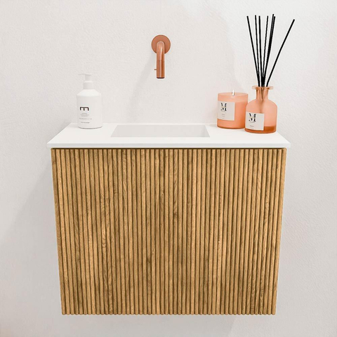 Mondiaz JOYA 50cm meuble de salle de bains WC - couleur Chêne - Vasque FAYE position Gauche Sans trou de robinet couleur Talc.