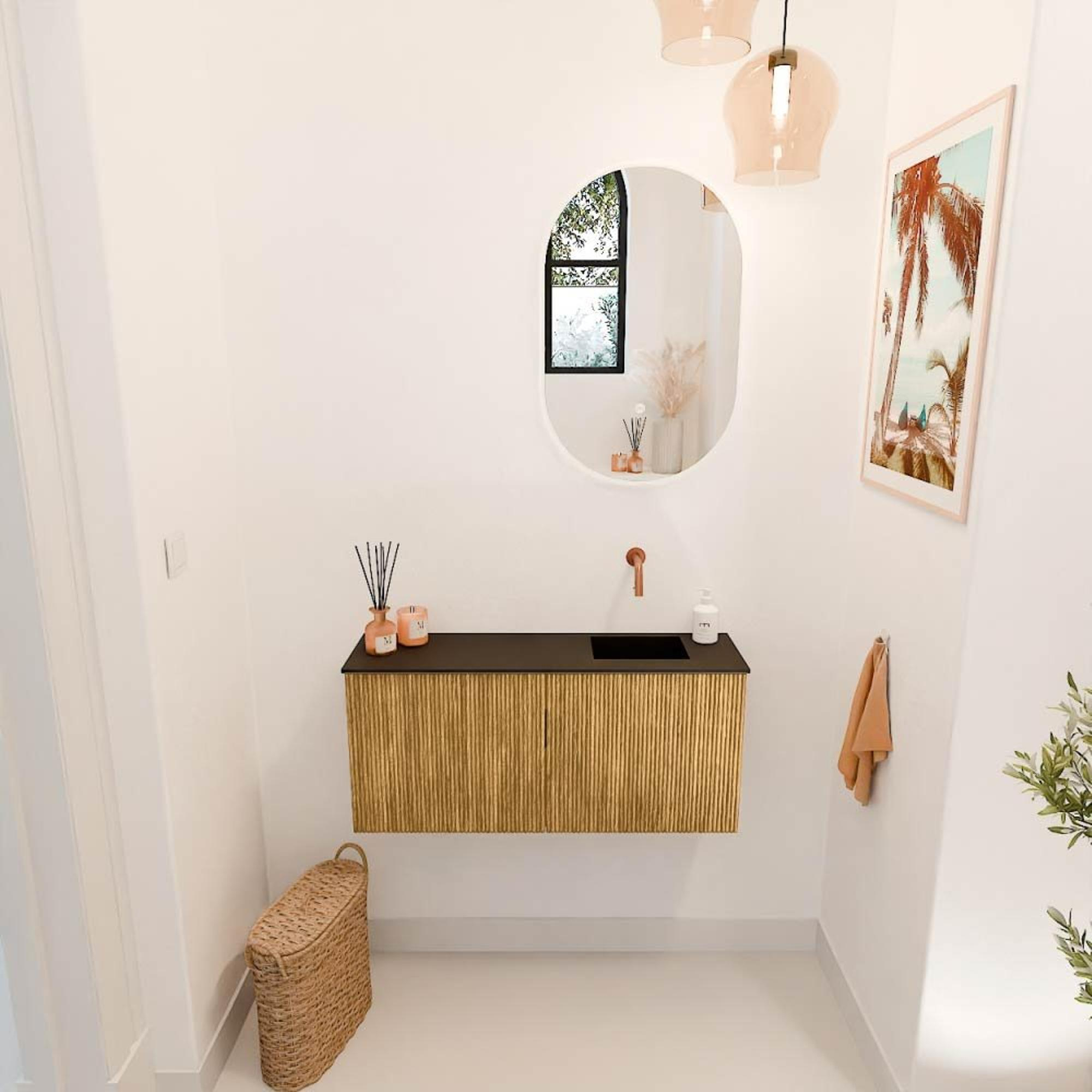 Mondiaz JOYA 90cm meuble de salle de bains - couleur Oak - Vasque FAYE position Droite Sans trou de robinet couleur Urban.