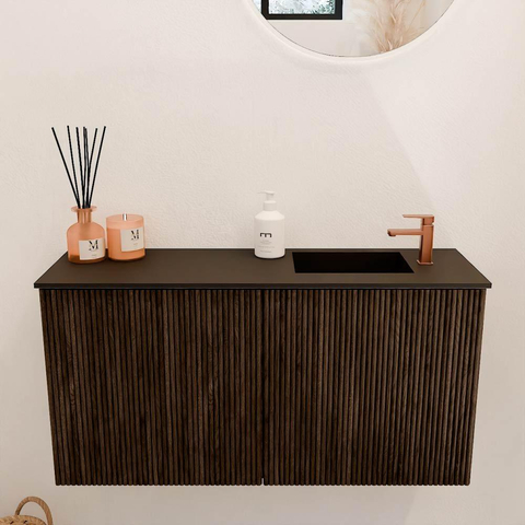 Mondiaz JOYA 80cm meuble de salle de bains - couleur Walnut - Vasque FAYE position Droite 1 trou de robinet couleur Urban.