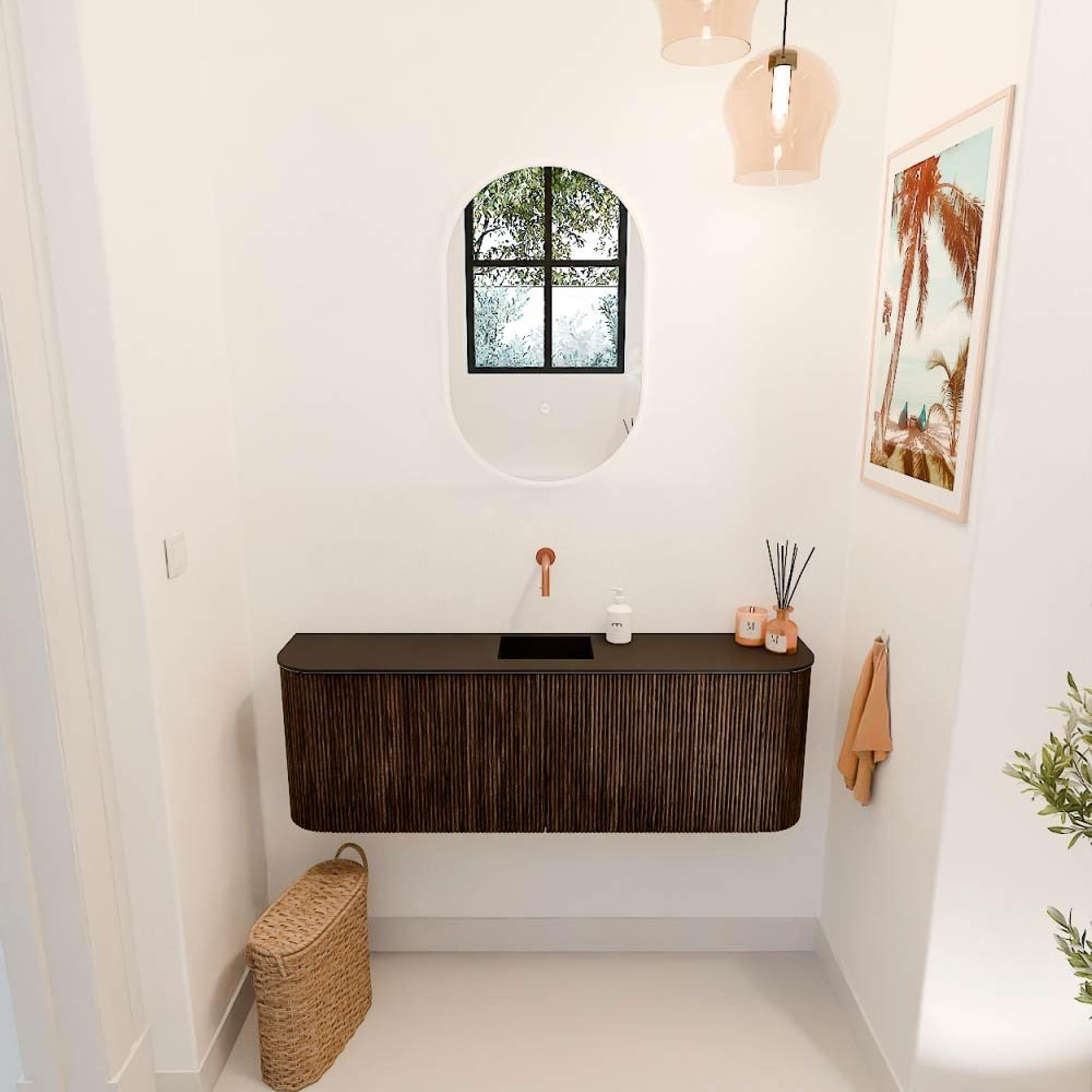 Mondiaz JOYA 123.2cm meuble de salle de bains - arrondi gauche et droite couleur Walnut - Vasque FAYE position Milieu Sans trou de robinet couleur Urban