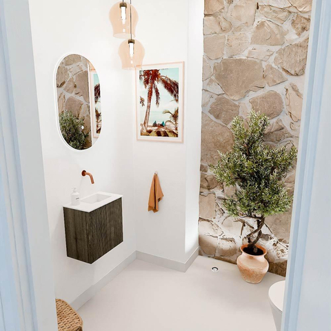 Avec une largeur de 40 cm et un design à profondeur réduite, ce meuble est idéal pour les petites salles de bains ou toilettes où l'espace est limité. La vasque est positionnée à droite sans trou de robinet, vous laissant le choix d'un robinet encastré qui correspond parfaitement à votre style et vos souhaits. Cela vous offre une liberté maximale dans l'aménagement et assure un look épuré et ordonné. De plus, le meuble offre suffisamment d'espace de rangement pour garder votre salle de bains propre et organisée, contribuant ainsi à une atmosphère apaisante.