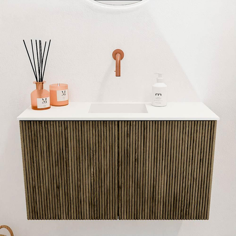 Le meuble attire immédiatement l'attention par son devant moderne strié qui donne un effet ludique et pourtant raffiné. La combinaison de chêne massif à l'avant et de placage chêne sur les côtés assure une apparence naturelle et luxueuse. La couleur Dusk renforce cette atmosphère chaleureuse, permettant au meuble de s'intégrer facilement dans divers styles de salle de bains. Ce design élégant rend votre salle de bains non seulement plus belle, mais procure aussi une sensation de calme et de confort. Ainsi, vous profitez chaque jour d'une salle de bains qui non seulement est belle, mais invite aussi à la détente.