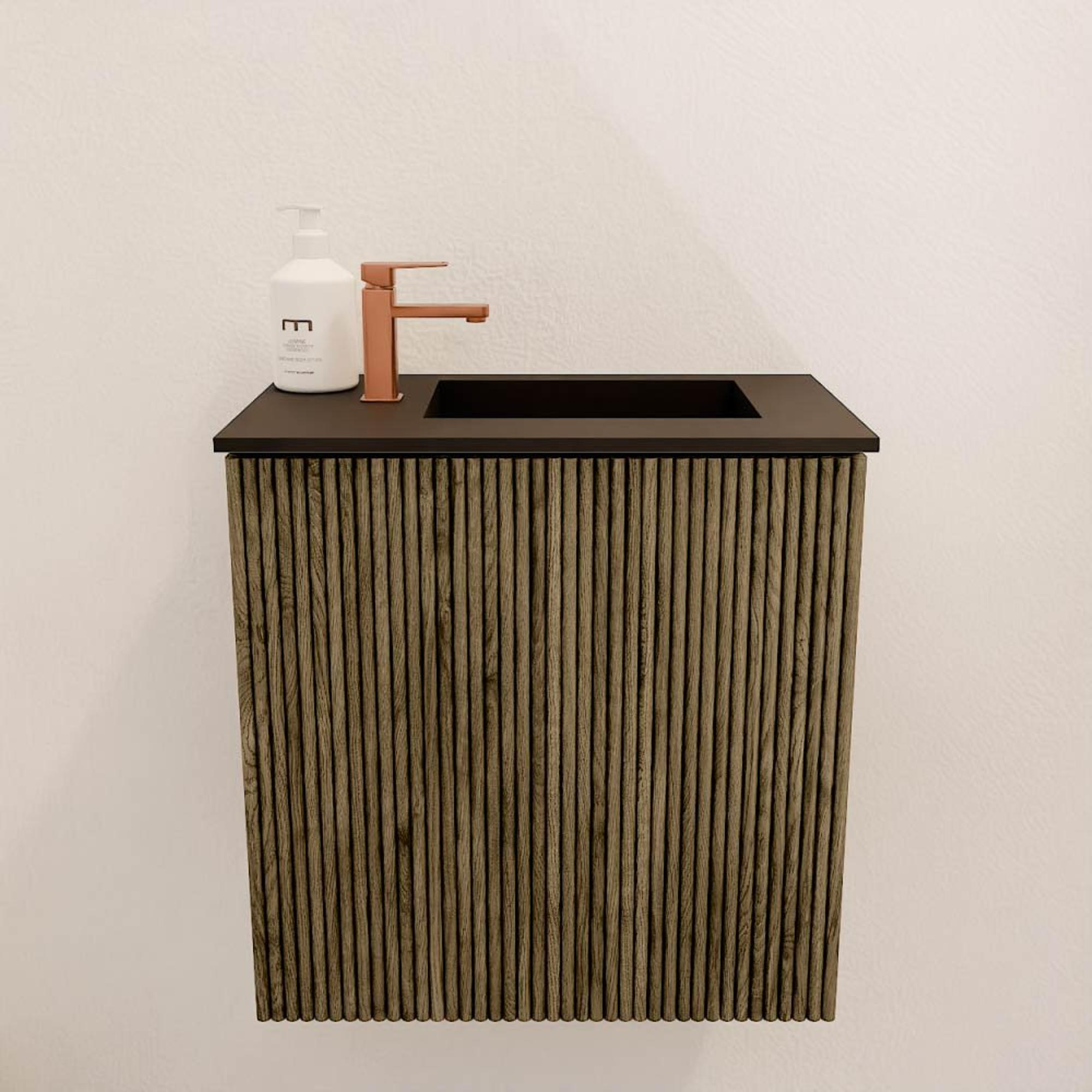 Le meuble se distingue immédiatement par sa façade moderne et rainurée qui apporte une texture unique et de la profondeur à votre salle de bains. La couleur Dusk est une teinte douce et neutre qui se combine facilement avec différents styles de salle de bains, du minimaliste à l'industriel. Le contraste subtil avec la vasque Urban crée un look harmonieux et contemporain. Ce meuble n'est pas seulement fonctionnel, c'est un véritable point fort qui donne à votre salle de bains une apparence luxueuse sans dominer.