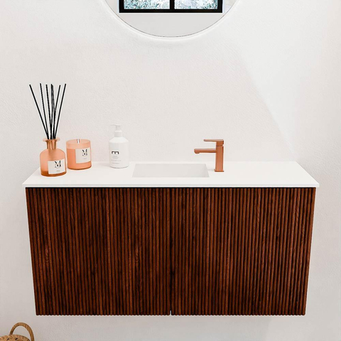 Les rainures verticales remarquables donnent au meuble une apparence élégante et moderne qui attire immédiatement l'attention. Ce choix de design unique fait que votre salle de bains obtient une ambiance contemporaine et raffinée. La couleur Ruby ajoute de la chaleur et fait du meuble un véritable point focal. Ainsi, vous créez un espace qui n'est pas seulement fonctionnel, mais aussi accueillant et élégant. Ce meuble s'intègre facilement dans divers styles d'intérieur, du moderne au classique, et élève l'apparence de votre salle de bains à un niveau supérieur.