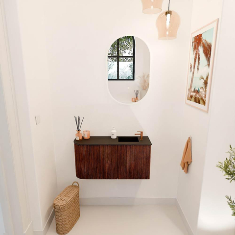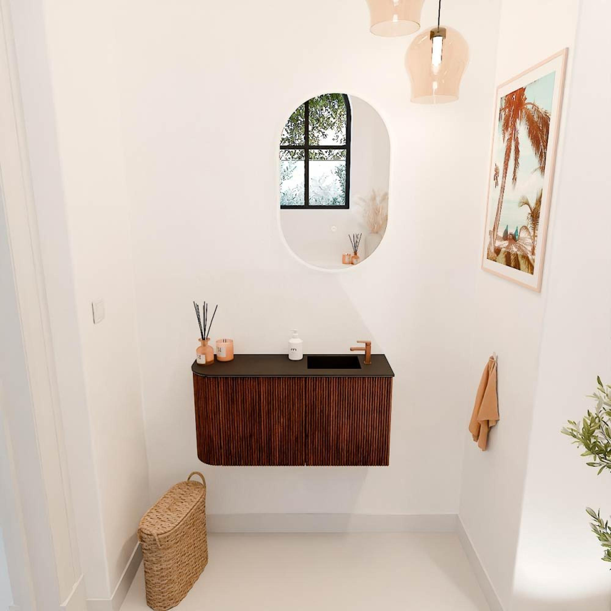 Mondiaz JOYA Meuble de salle de bains - 81.6cm - arrondi gauche couleur Ruby - Vasque FAYE position Droite 1 trou de robinet couleur Urban