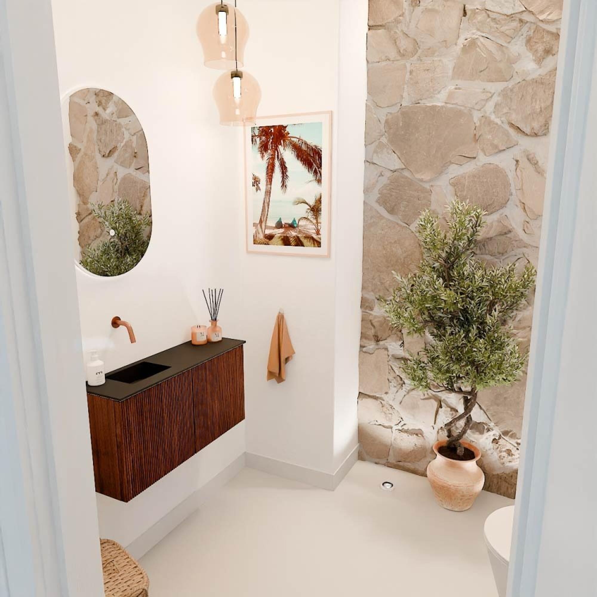 Mondiaz JOYA 80cm meuble de salle de bains WC - couleur Ruby - Lavabo FAYE position Gauche Sans trou de robinet couleur Urban.