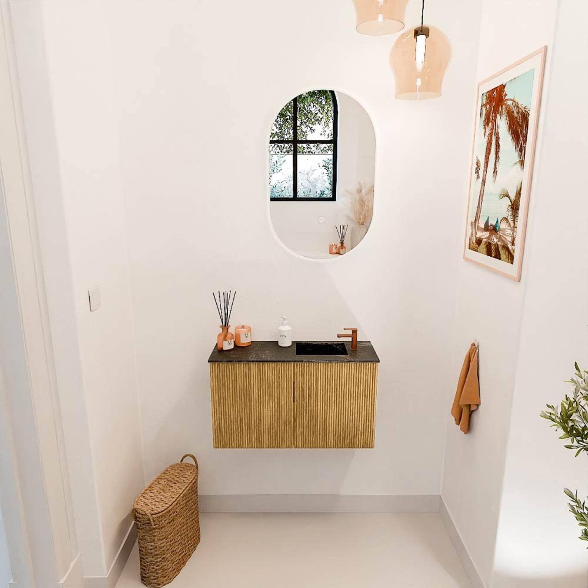 Mondiaz JOYA-DLUX 70cm meuble de salle de bains - couleur Oak - Vasque FAYE position Droite 1 trou de robinet couleur Lava.