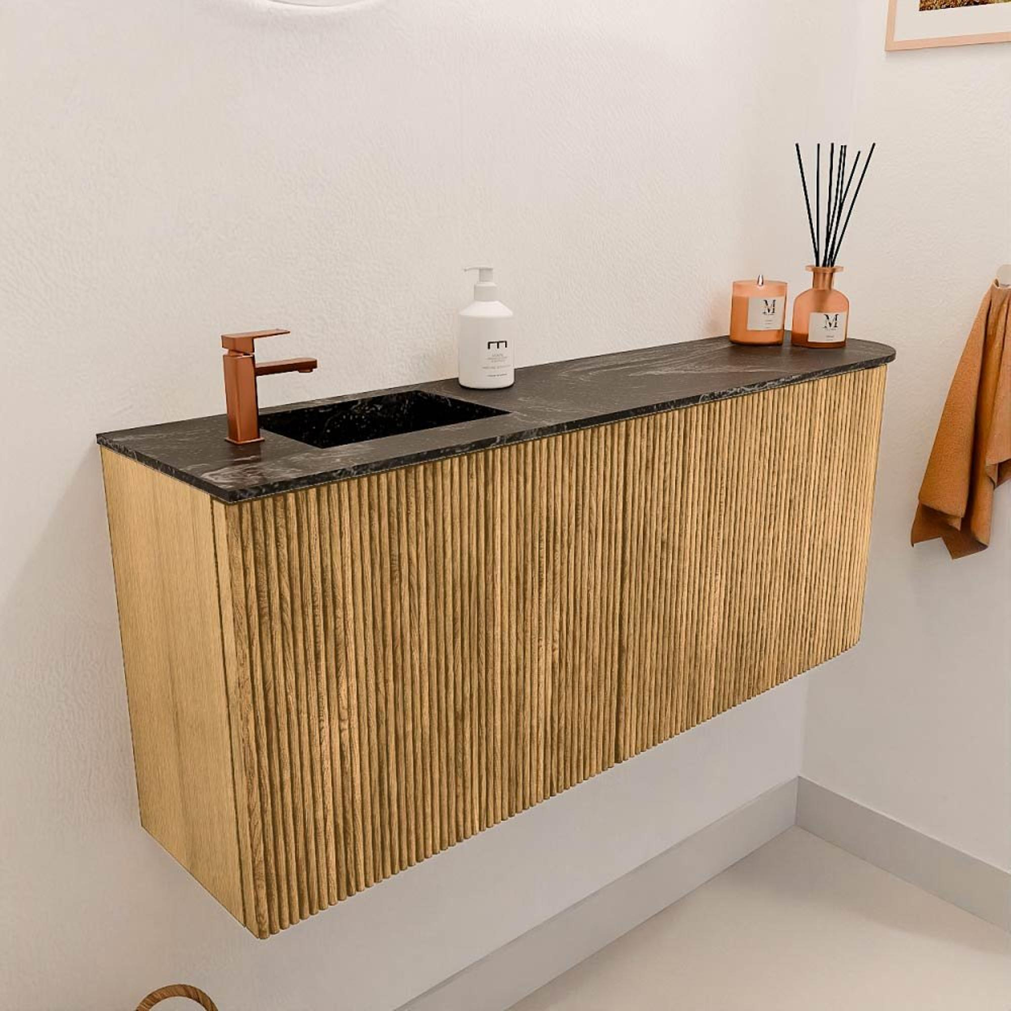 Mondiaz JOYA-DLUX 101.6cm meuble de salle de bains - arrondi droit couleur Chêne - Vasque FAYE position Gauche 1 trou de robinet couleur Lava.