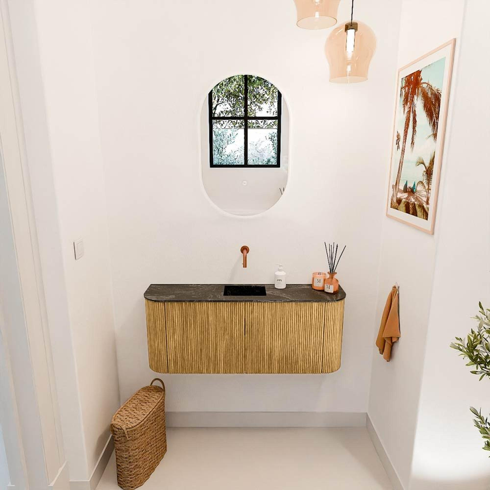 Mondiaz JOYA-DLUX Meuble de salle de bains 103.2cm - arrondi gauche et droite couleur Chêne - Vasque FAYE position Milieu Sans trou de robinet couleur Lava