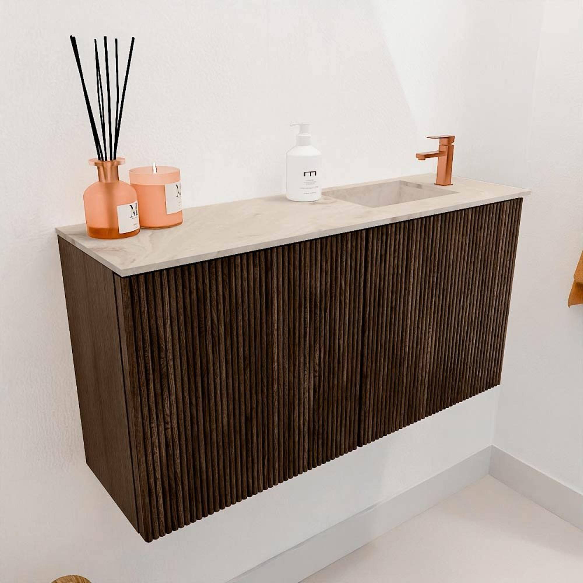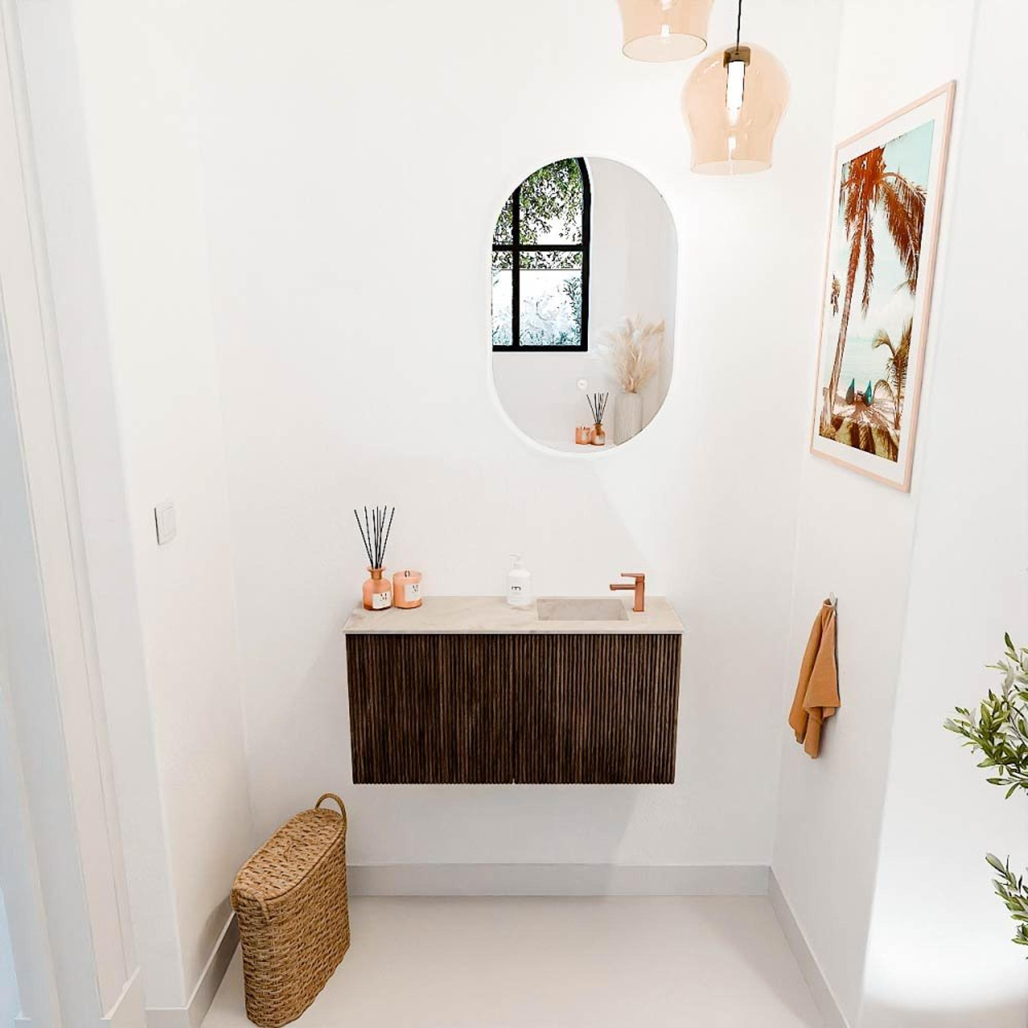 Mondiaz JOYA-DLUX Meuble de toilette 80cm - couleur Walnut - Vasque FAYE position Droite 1 trou de robinet couleur Frappe