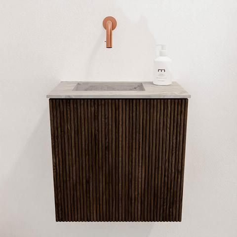 Le meuble se distingue immédiatement par sa couleur chaude noyer et les rainures verticales qui lui confèrent un aspect contemporain et chic. Cela en fait un véritable point focal dans votre salle de bains ou vos toilettes. La combinaison de chêne massif et de placage chêne assure un aspect naturel et luxueux qui s'adapte parfaitement à différents styles d'intérieur. Grâce aux détails subtils et au design épuré, vous ajoutez facilement de l'ambiance et de l'élégance à votre espace. Ainsi, vous profitez non seulement de la fonctionnalité, mais aussi d'un meuble qui complète vraiment votre salle de bains.