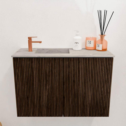 Mondiaz JOYA-DLUX 60cm meuble de salle de bains - couleur Walnut - Vasque FAYE position Gauche 1 trou de robinet couleur Glace.