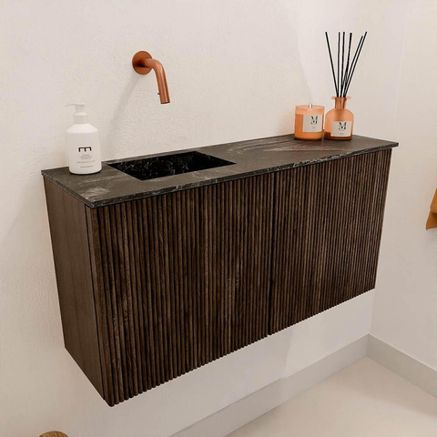 Mondiaz JOYA-DLUX 80cm meuble de toilette - couleur Walnut - Vasque FAYE position Gauche Sans trou de robinet couleur Lava.