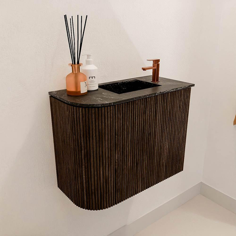 Mondiaz JOYA-DLUX Meuble de salle de bains 51,6cm - arrondi gauche couleur Noyer - Vasque FAYE position Droite 1 trou de robinet couleur Lava