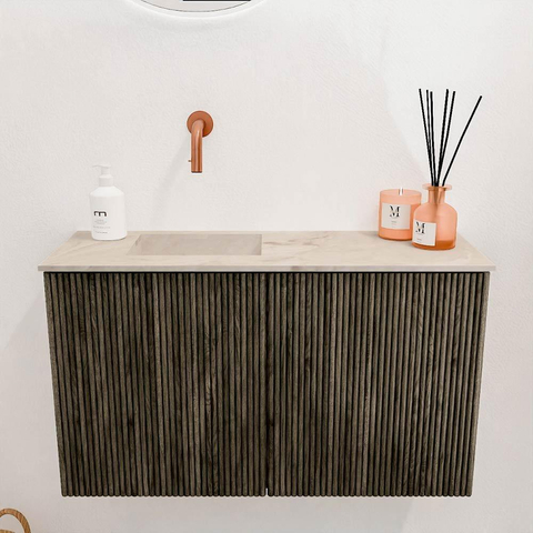 Mondiaz JOYA-DLUX 70cm meuble de salle de bains - couleur Shadow - Vasque FAYE position Gauche Sans trou de robinet couleur Frappe.