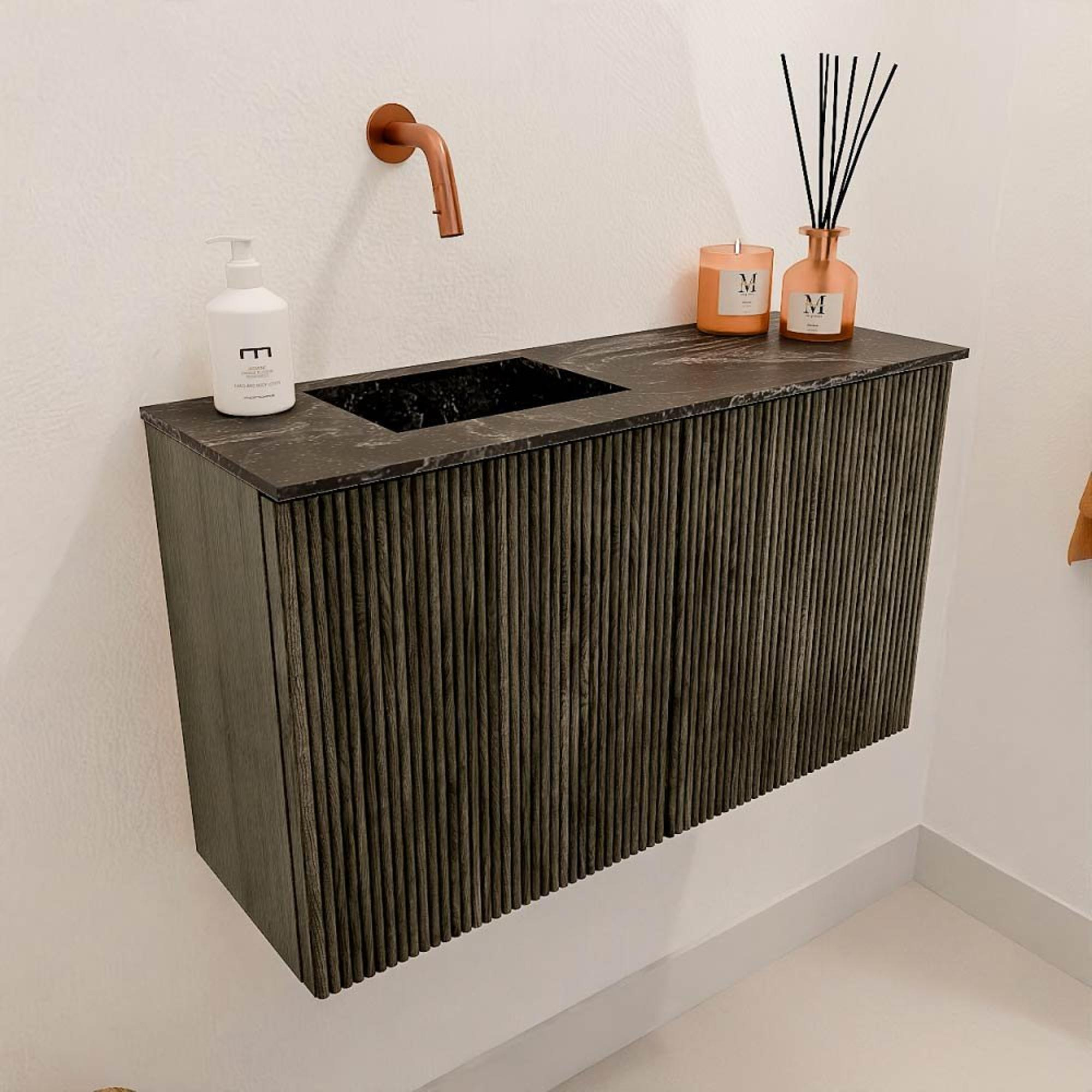 Mondiaz JOYA-DLUX 70cm meuble de salle de bains - couleur Shadow - Vasque FAYE position Gauche Sans trou de robinet couleur Lava.