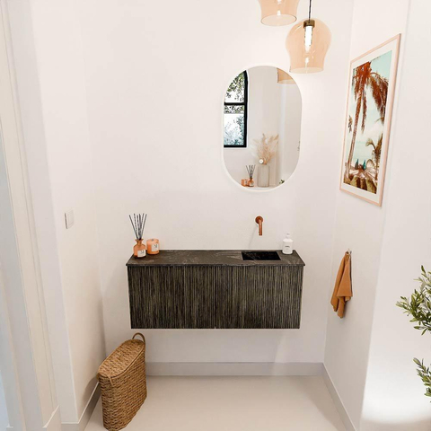 Mondiaz JOYA-DLUX Meuble de salle de bains 100cm - couleur Shadow - Vasque FAYE position Droite Sans trou de robinet couleur Lava