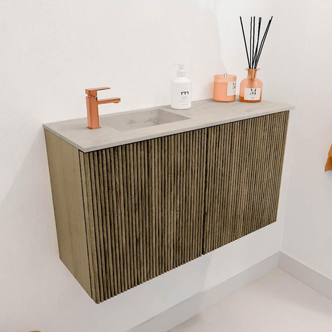 Mondiaz JOYA-DLUX Meuble de salle de bains 70cm - couleur Dusk - Vasque FAYE position Gauche 1 trou de robinet couleur Opalo.