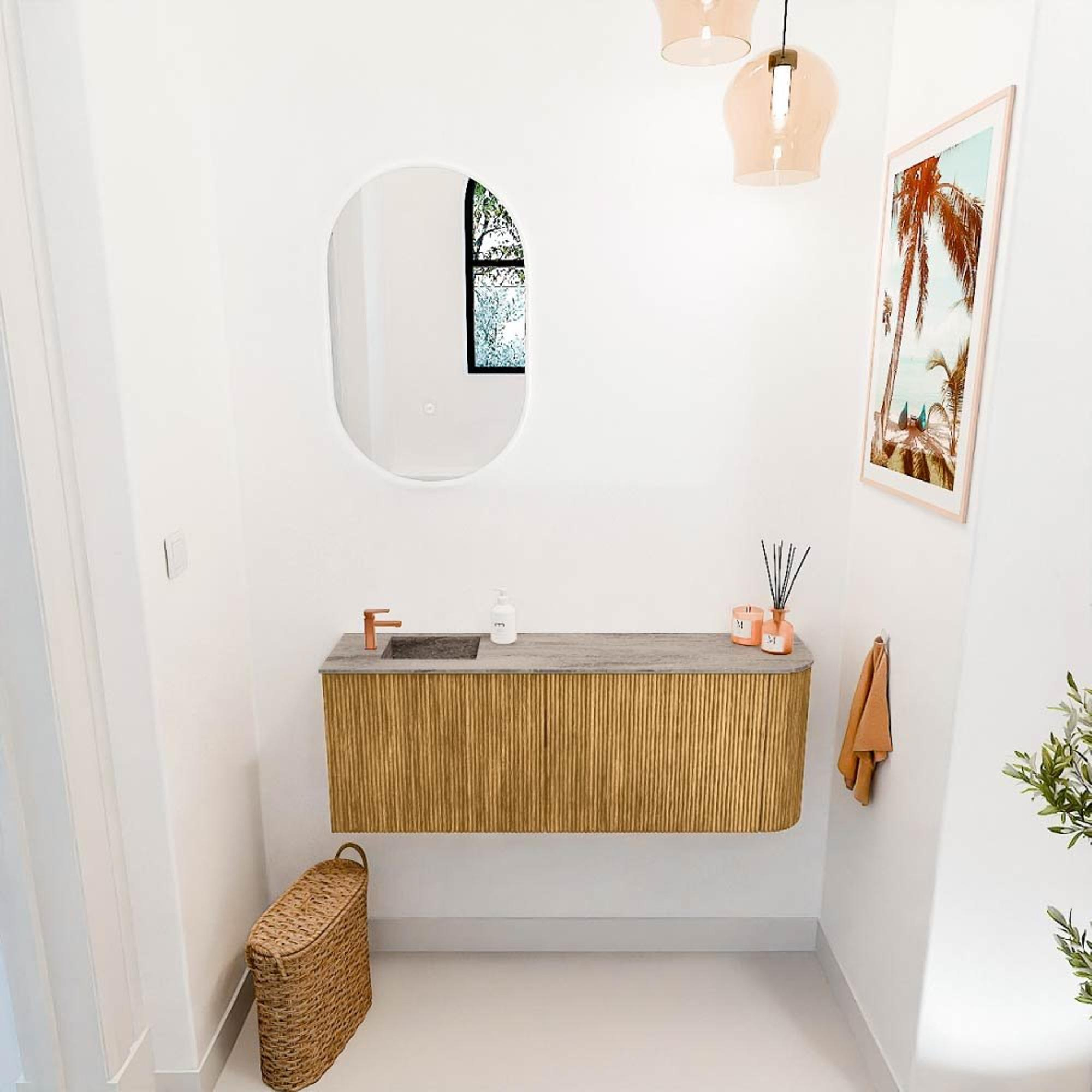 Mondiaz JOYA-DLUX Meuble de salle de bains - 111.6cm - arrondi droit couleur Chêne - Vasque FAYE position Gauche 1 trou de robinet couleur Oza