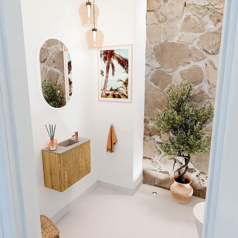 Mondiaz JOYA-DLUX Meuble de toilette 50cm - couleur Chêne - Vasque FAYE position Droite 1 trou de robinet couleur Saba.