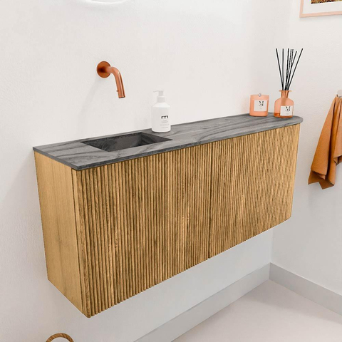 Mondiaz JOYA-DLUX Meuble de salle de bains 101.6cm - arrondi droit couleur Chêne - Vasque FAYE position Gauche Sans trou de robinet couleur Sombra