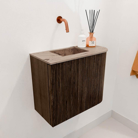 Mondiaz JOYA-DLUX Meuble de toilette 51,6cm - arrondi droit couleur Noyer - Vasque FAYE position Gauche Sans trou de robinet couleur Arena