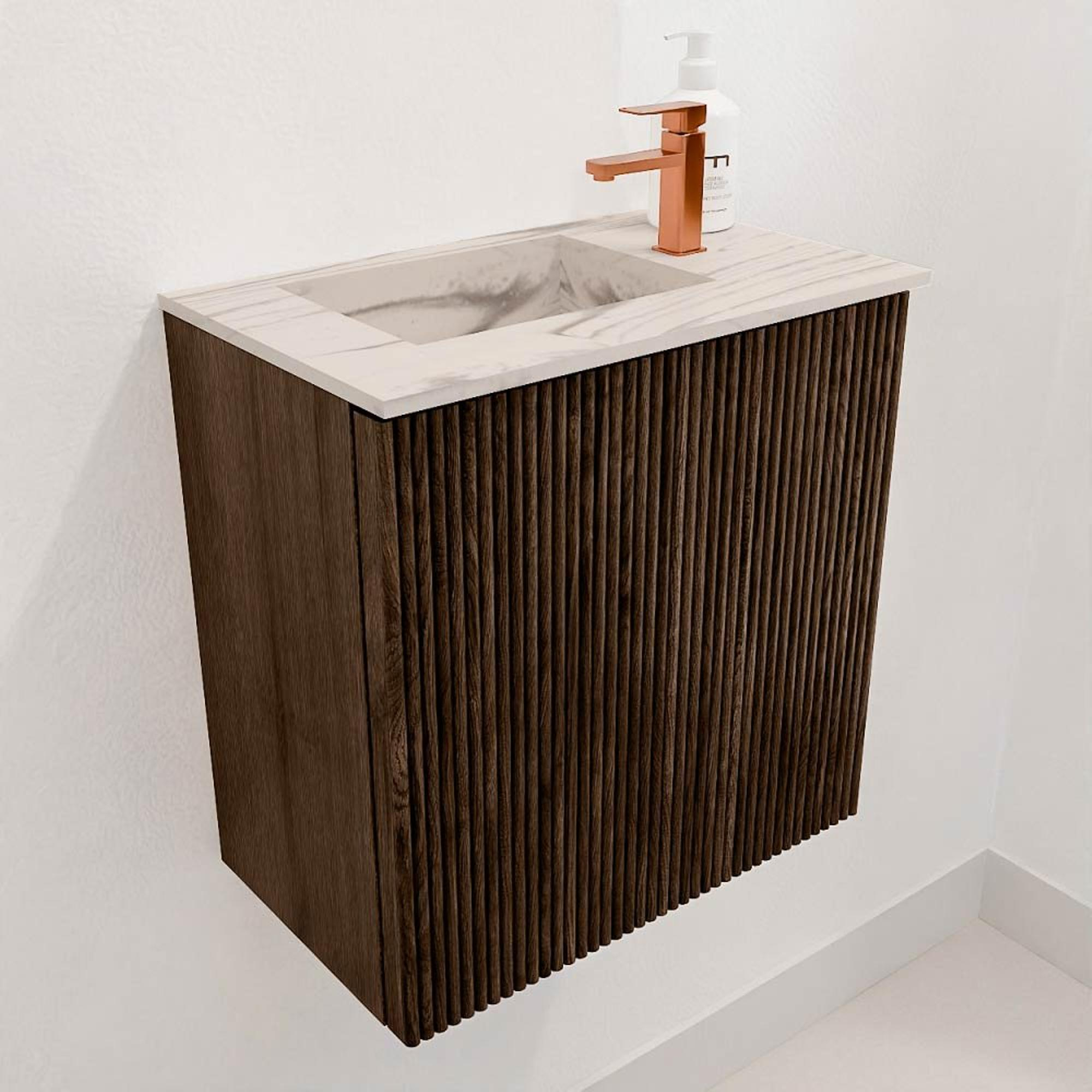 Mondiaz JOYA-DLUX Meuble de toilette 40cm - couleur Walnut - Vasque FAYE position Gauche 1 trou de robinet couleur Nata.