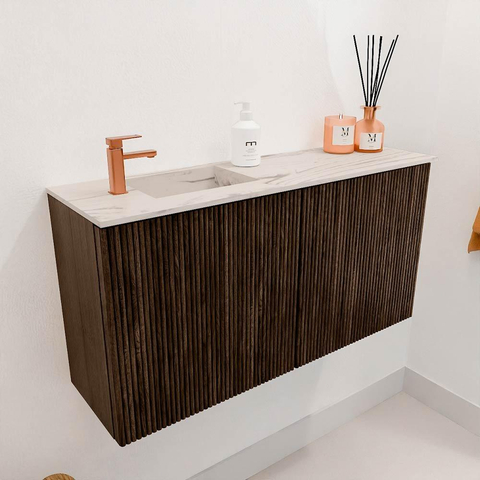 Mondiaz JOYA-DLUX 80cm meuble de salle de bains - couleur Walnut - Vasque FAYE position Gauche 1 trou de robinet couleur Nata.