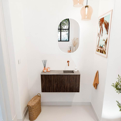 Mondiaz JOYA-DLUX 80cm meuble de salle de bains - couleur Walnut - Vasque FAYE position Droite Sans trou de robinet couleur Oza.