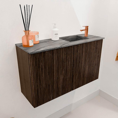 Mondiaz JOYA-DLUX 70cm meuble de salle de bains - couleur Walnut - Vasque FAYE position Droite 1 trou de robinet couleur Sombra.