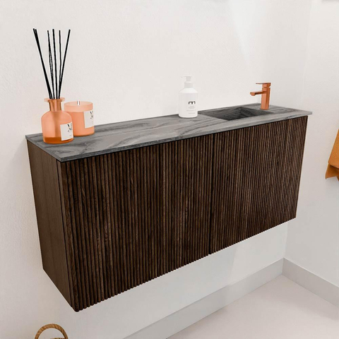 Mondiaz JOYA-DLUX 90cm meuble de salle de bains - couleur Walnut - Vasque FAYE position Droite 1 trou de robinet couleur Sombra.