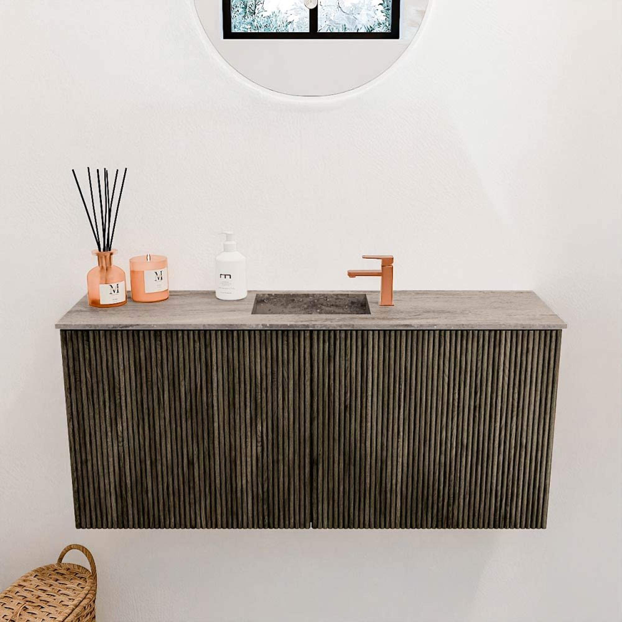 Avec sa couleur ombre profonde et la structure naturelle du bois, ce meuble dégage une pure élégance. La combinaison de chêne massif à l'avant et de placage chêne sur les côtés lui confère un aspect luxueux qui donne immédiatement un coup de neuf à votre salle de bains. Le design épuré et moderne s'intègre sans effort dans divers styles d'intérieur, du classique à l'industriel. Ainsi, vous profitez d'un meuble qui est non seulement fonctionnel, mais aussi un véritable point focal dans votre salle de bains.
