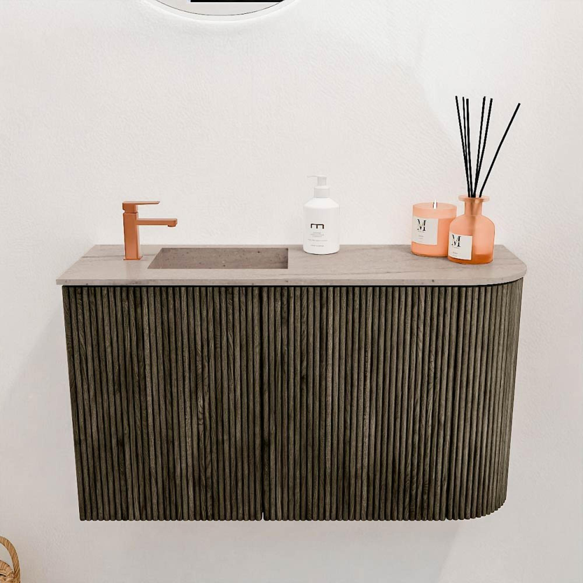 Mondiaz JOYA-DLUX Meuble WC - 71,6cm - arrondi droit couleur Shadow - Vasque FAYE position Gauche 1 trou de robinet couleur Saba