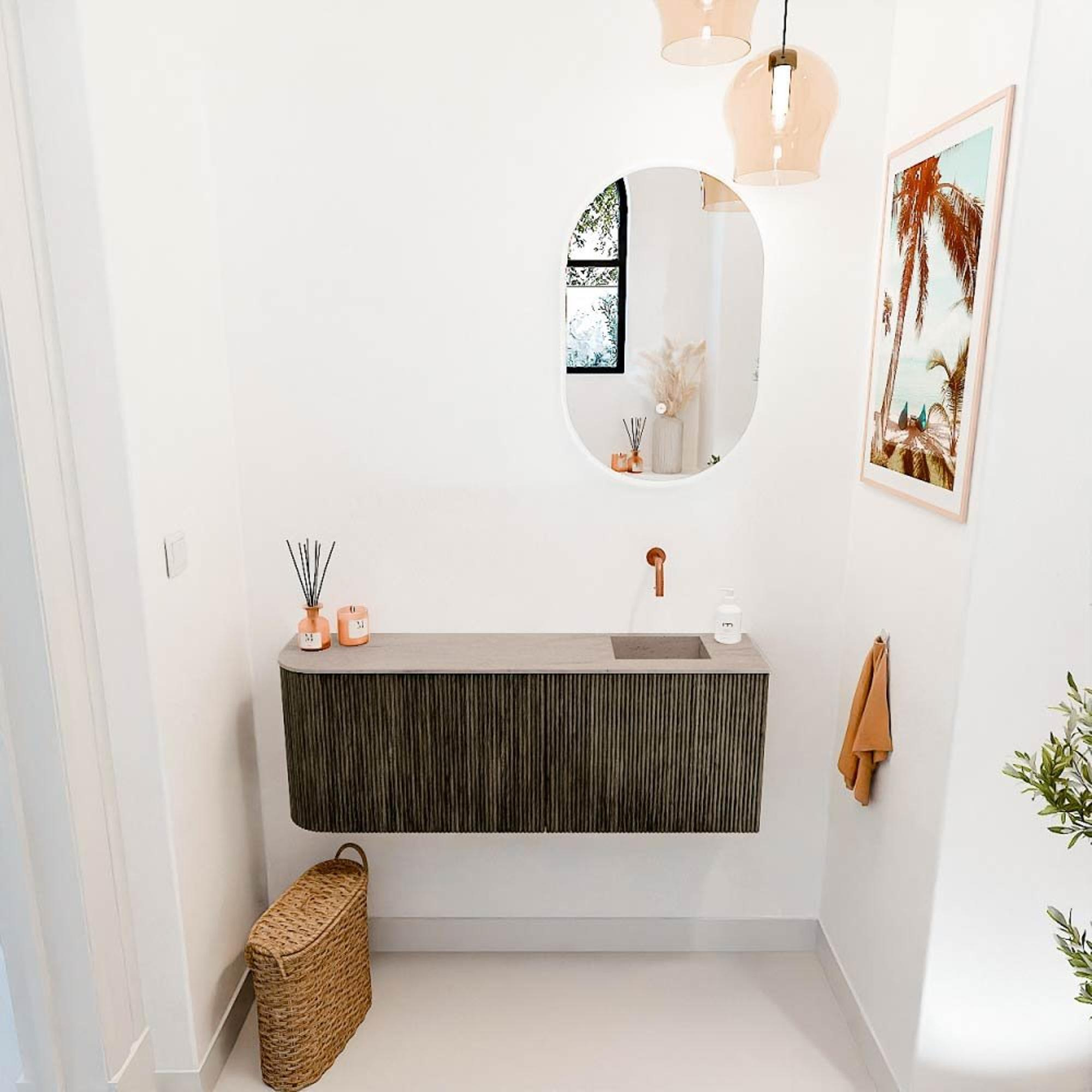 Mondiaz JOYA-DLUX 111.6cm meuble de salle de bains - arrondi gauche couleur Shadow - Vasque FAYE position Droite Sans trou de robinet couleur Saba.