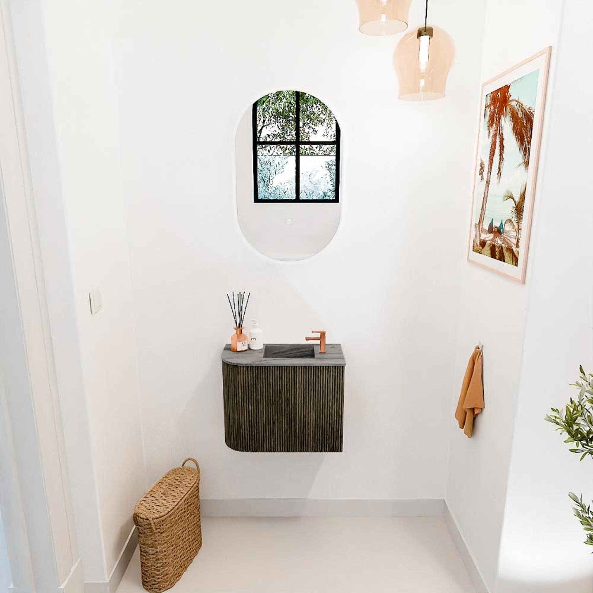Mondiaz JOYA-DLUX Meuble de salle de bains 51,6cm - arrondi gauche couleur Shadow - Vasque FAYE position droite 1 trou de robinet couleur Sombra.