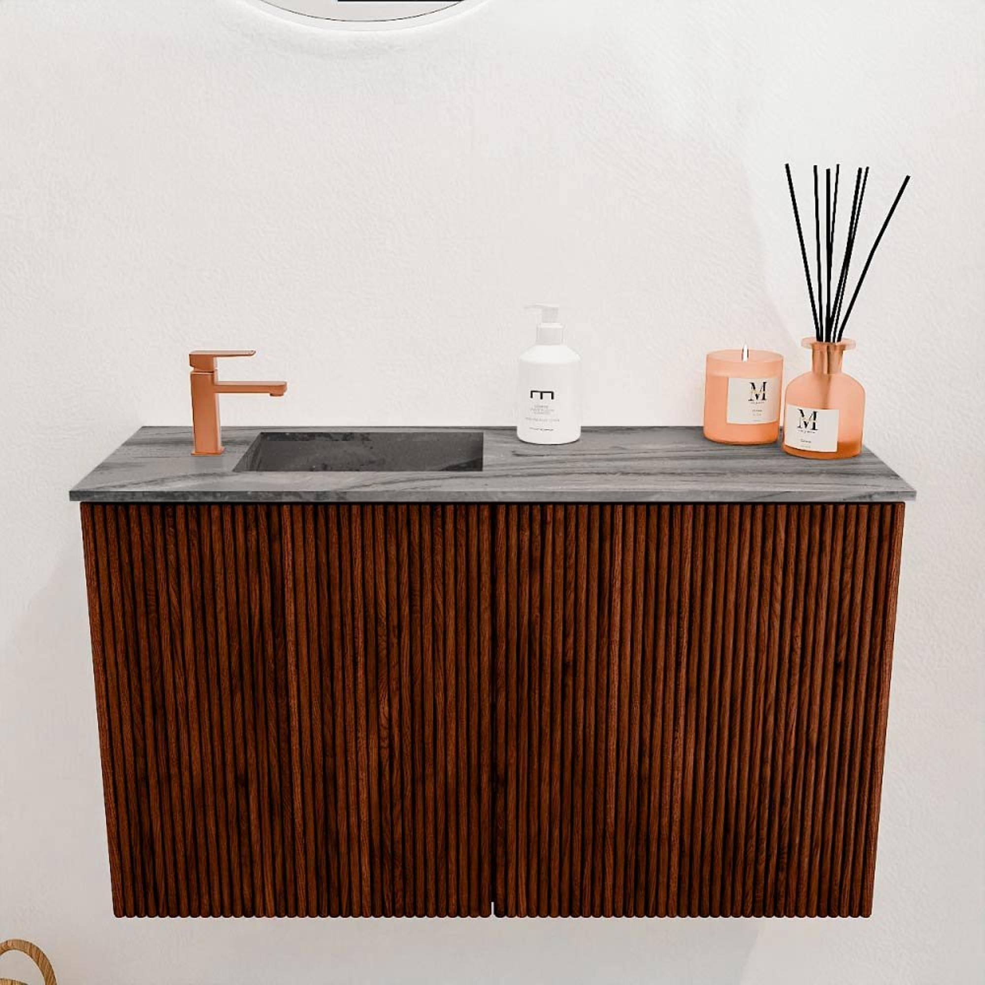 Mondiaz JOYA-DLUX 70cm meuble de salle de bains - couleur Ruby - Vasque FAYE position Gauche 1 trou de robinet couleur Sombra.