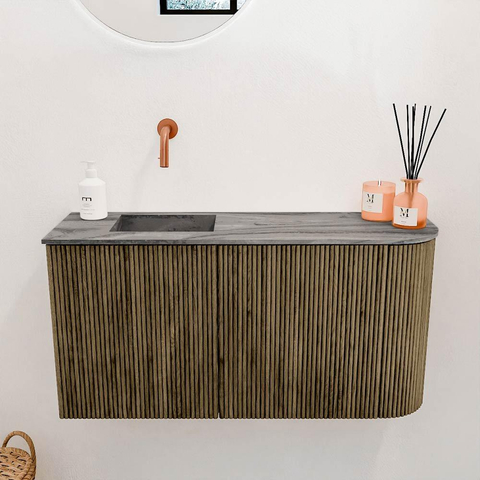 Mondiaz JOYA-DLUX Meuble de toilette 81,6 cm - arrondi droit couleur Dusk - Vasque FAYE position Gauche Sans trou de robinet couleur Sombra