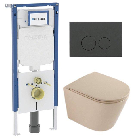 QeramiQ Dely Toiletset - 36.3x51.7cm - diepspoel - rimless - Geberit UP720 inbouwreservoir - softclose toilet zitting - bedieningsplaat mat antraciet - ronde knoppen - mat beige
