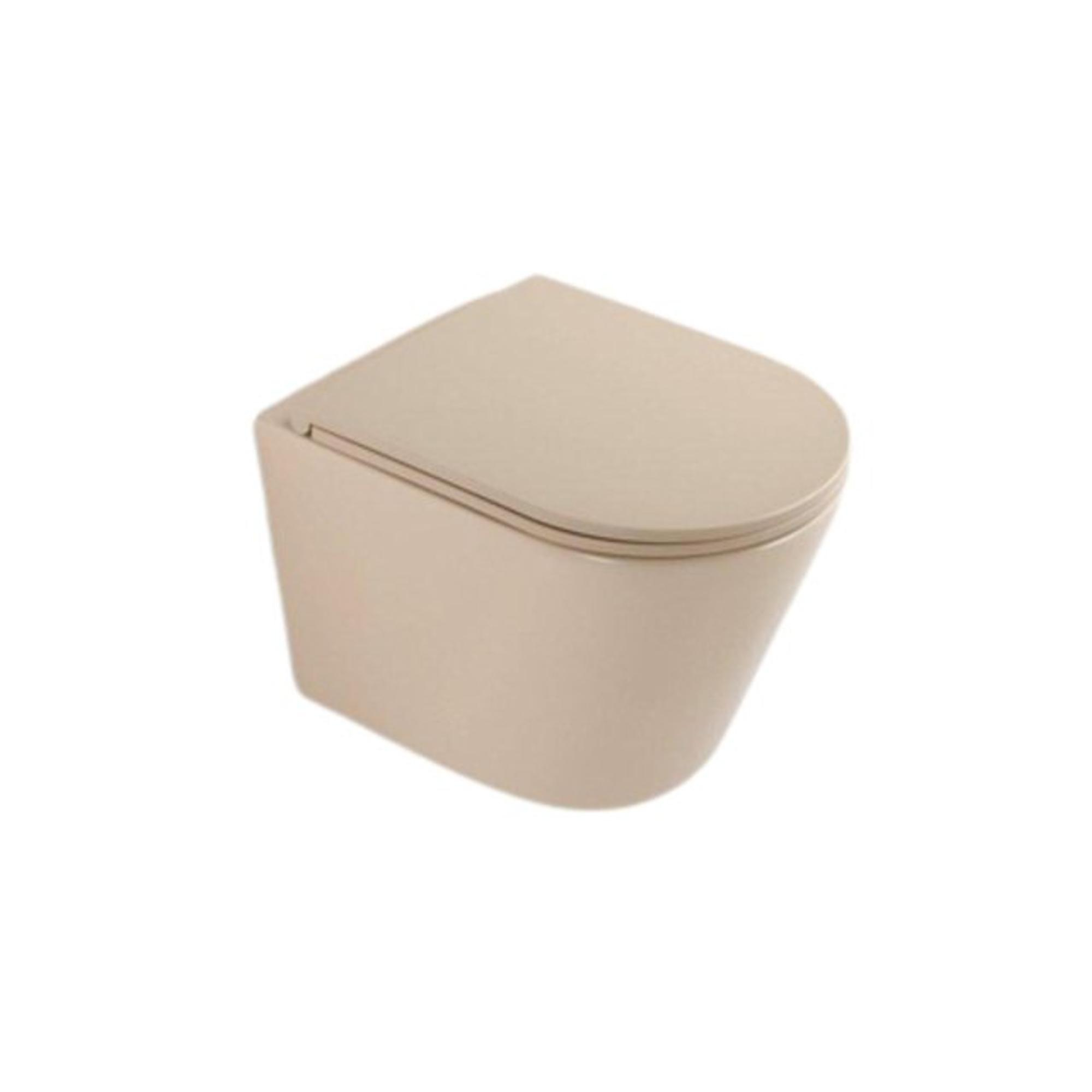 QeramiQ Dely Toiletset - 36.3x51.7cm - diepspoel - rimless - Geberit UP720 inbouwreservoir - softclose toilet zitting - bedieningsplaat licht grijs - rechthoekige knoppen - mat beige