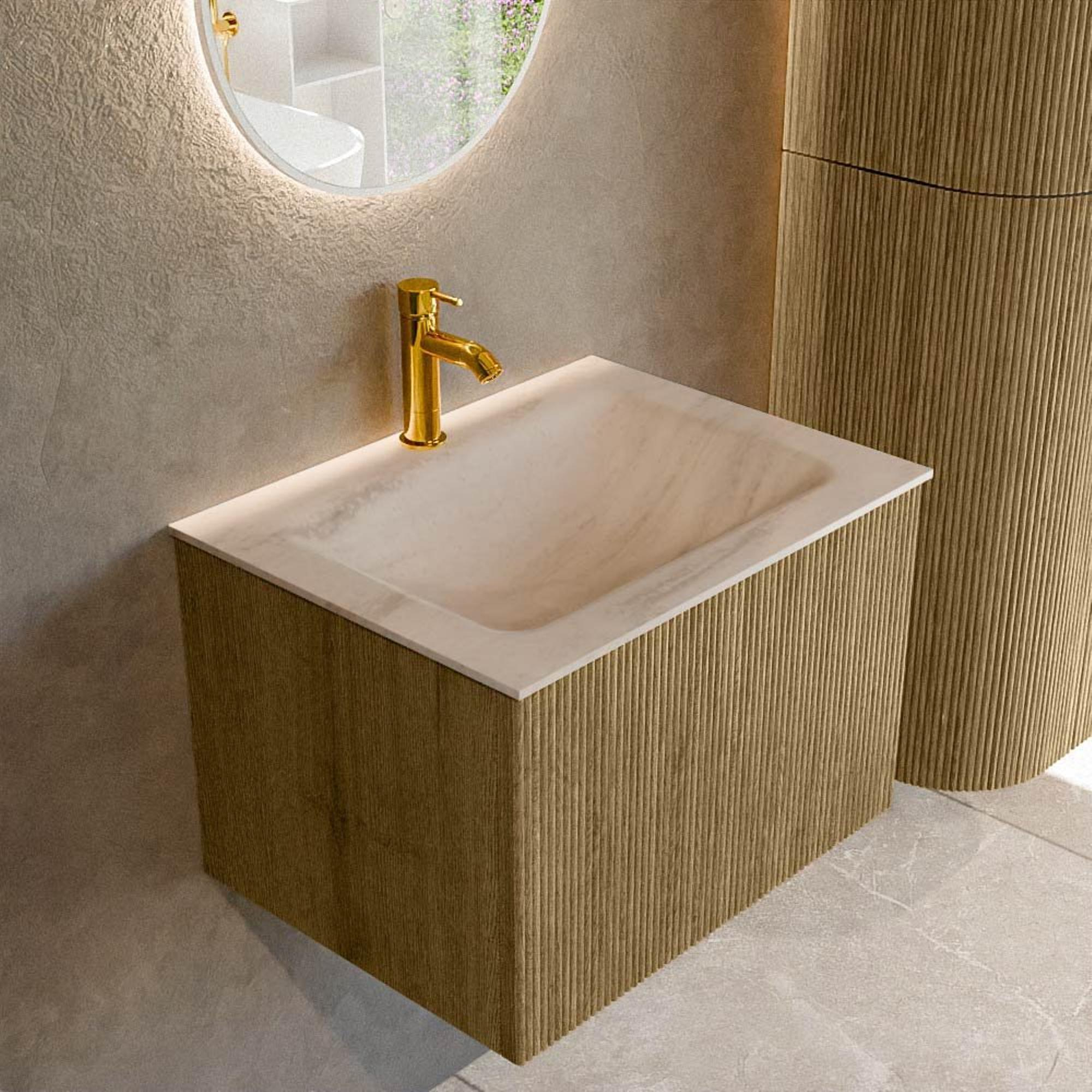 MONDIAZ KURVE-DLUX 60cm badmeubel kleur Dusk met 1 lade en 0 deuren. Wastafel CLOUD Midden 1 kraangat Meli.
