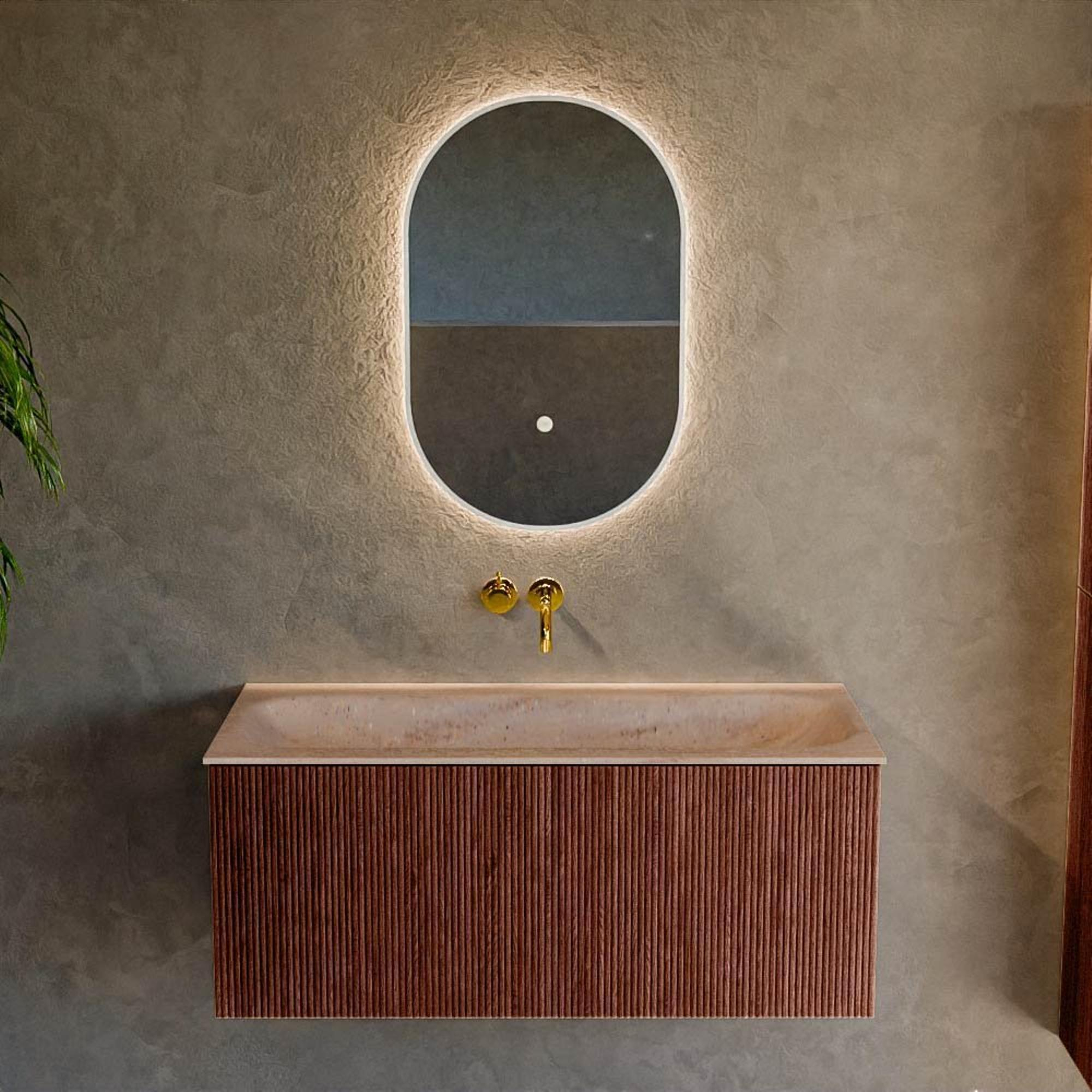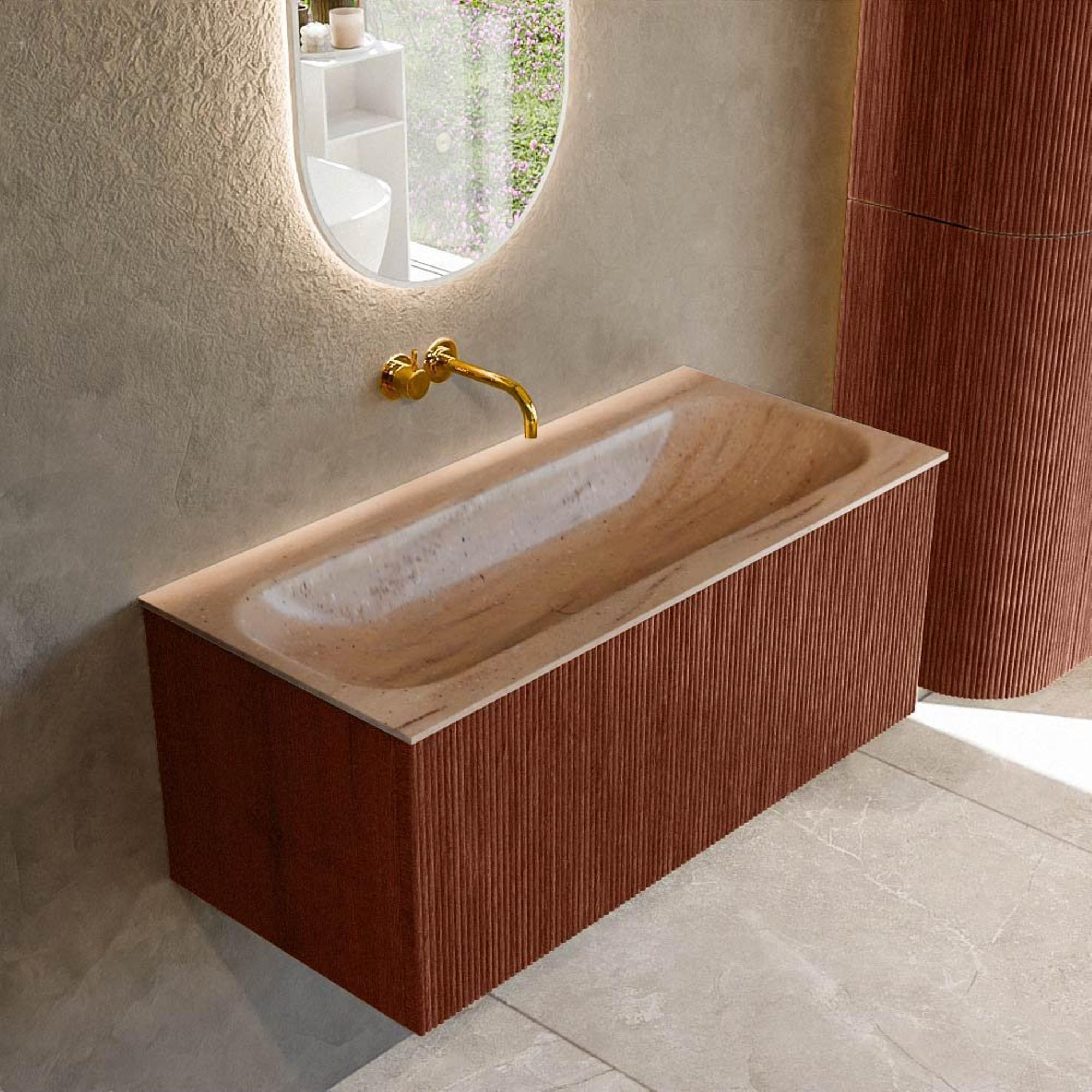 MONDIAZ KURVE-DLUX 100cm badmeubel kleur Ruby met 1 lade en 0 deuren. Wastafel BIG MEDIUM Midden zonder kraangat Saba.