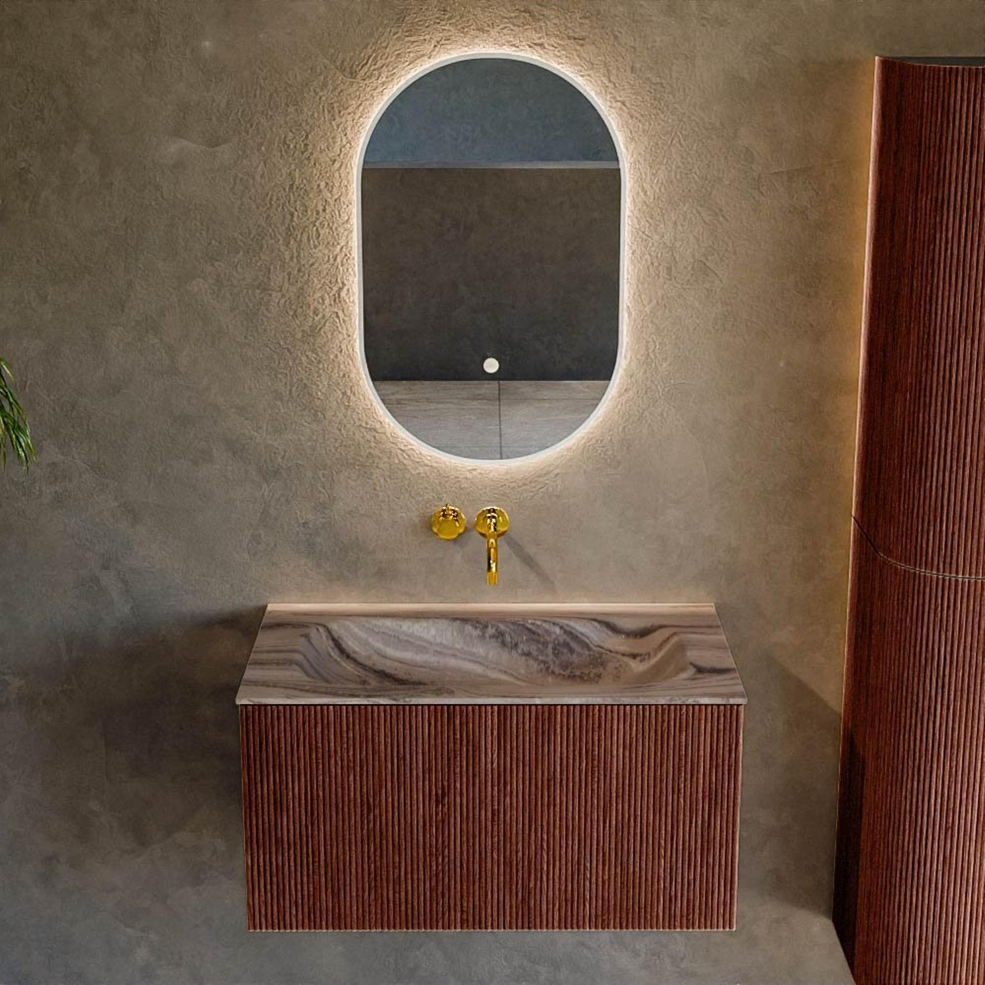 MONDIAZ KURVE-DLUX 80cm badmeubel kleur Ruby met 1 lade en 0 deuren. Wastafel BIG SMALL Midden zonder kraangat Sombra.