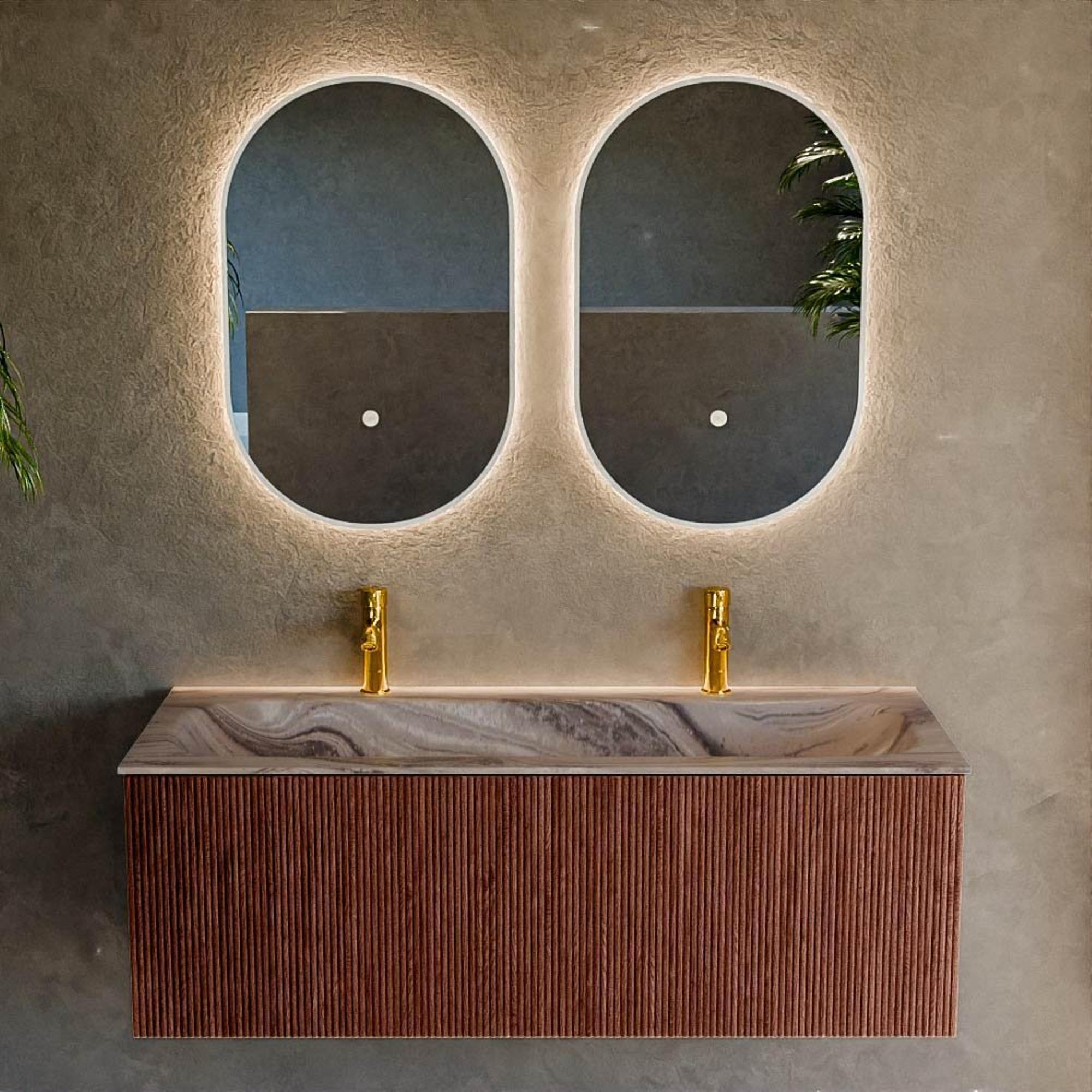MONDIAZ KURVE-DLUX 120cm badmeubel kleur Ruby met 1 lade en 0 deuren. Wastafel BIG LARGE Midden 2 kraangaten Sombra.