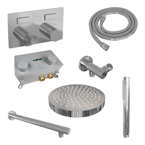 BRAUER Stripe Douche de tête thermostatique encastrée - boutons-poussoirs - SET 25 - pomme de douche 25cm - bras mural droit - douchette sur barre - flexible de douche - coude mural - chrome