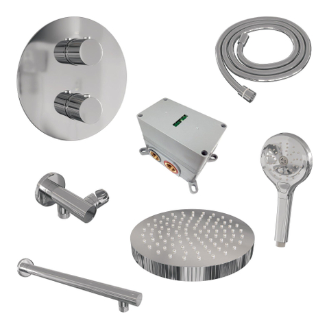 BRAUER Stripe Douche de tête thermostatique encastrable - 3 voies - ronde - SET 40 - pomme de douche 25cm - bras mural droit - douchette 3 positions - flexible de douche - coude mural - chrome