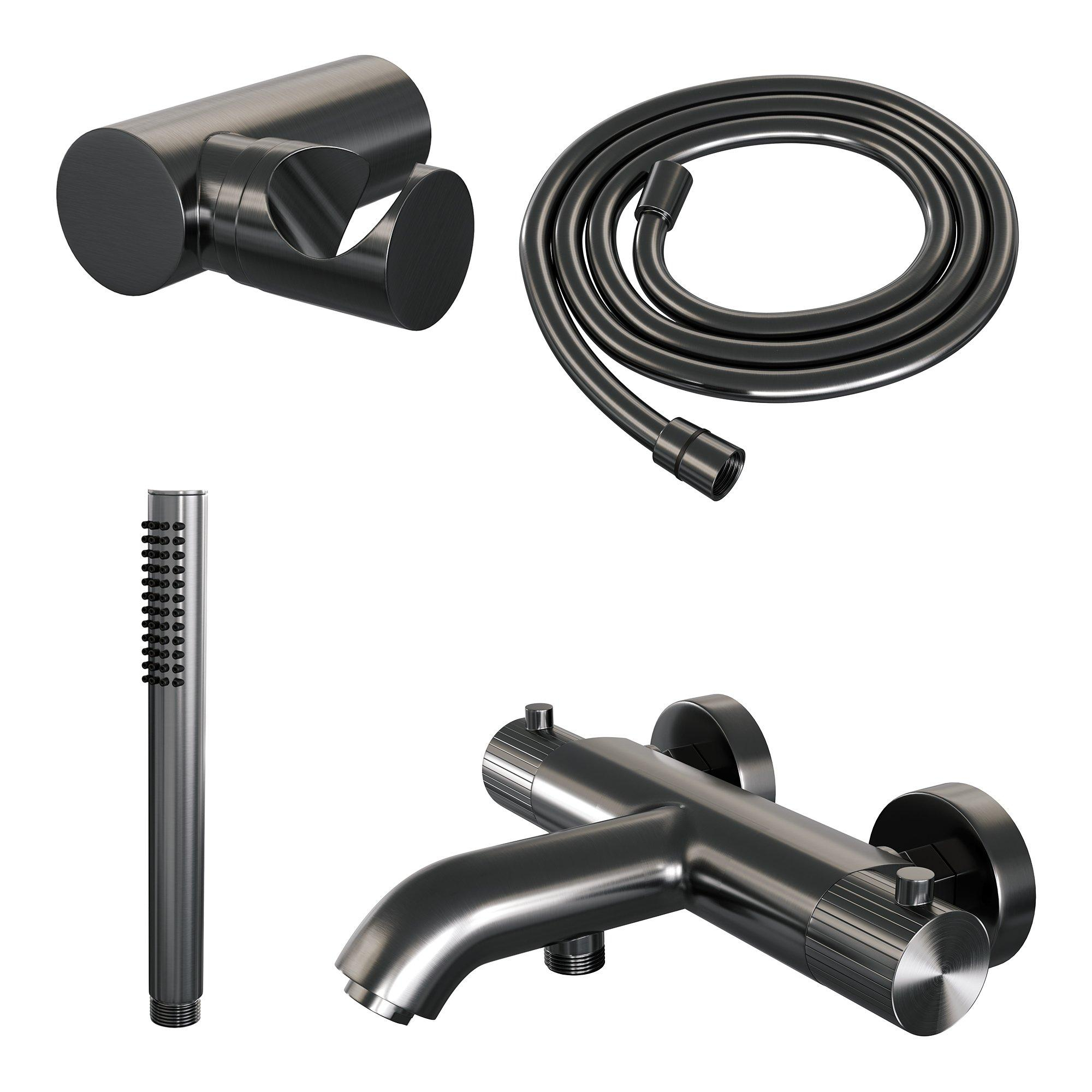 Avec ce mitigeur thermostatique de haute qualité, transformez votre salle de bains en une oasis de confort et de style. La combinaison d’un design épuré et d’une fonctionnalité réfléchie fait de la douche et du bain un véritable plaisir. Grâce à la pose apparente, l’installation est simple et flexible, tandis que le support mural, la douchette sur barre et le flexible de douche fournis offrent tout ce dont vous avez besoin pour une expérience de douche complète. La finition PVD gunmetal brossée apporte une apparence moderne et luxueuse qui s’harmonise parfaitement avec divers styles de salle de bains. Vous profitez ainsi non seulement d’une utilisation optimale, mais aussi d’un design intemporel qui donne à votre salle de bains une élégante mise à niveau.