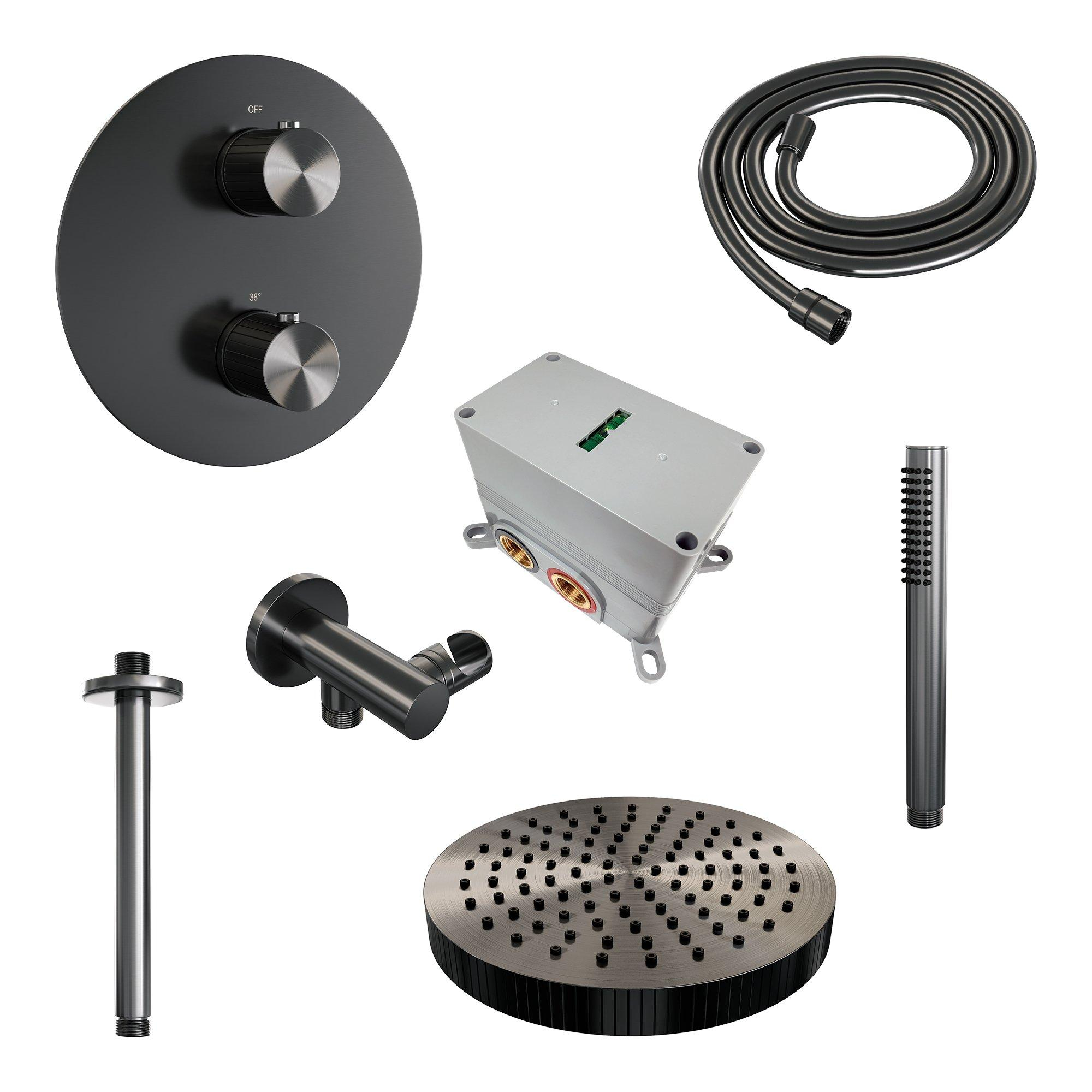 BRAUER Stripe Douche de tête thermostatique encastrable - 3 voies - ronde - SET 39 - pomme de douche 25cm - bras plafond - douchette sur barre - flexible de douche - coude mural - gunmetal brossé PVD