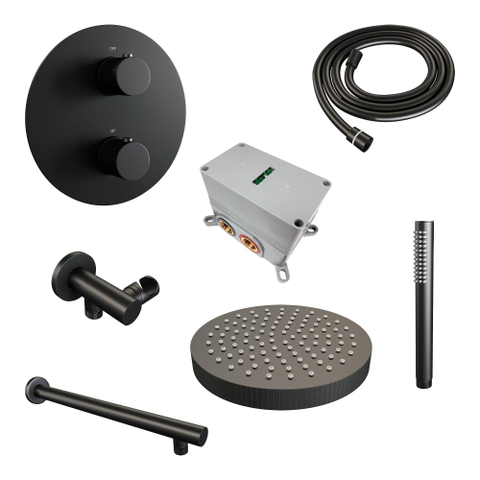BRAUER Stripe Douche de tête thermostatique encastrée - 3 voies - ronde - SET 37 - pomme de douche 25 cm - bras mural droit - douchette à main sur barre - flexible de douche - coude de raccord mural - noir mat