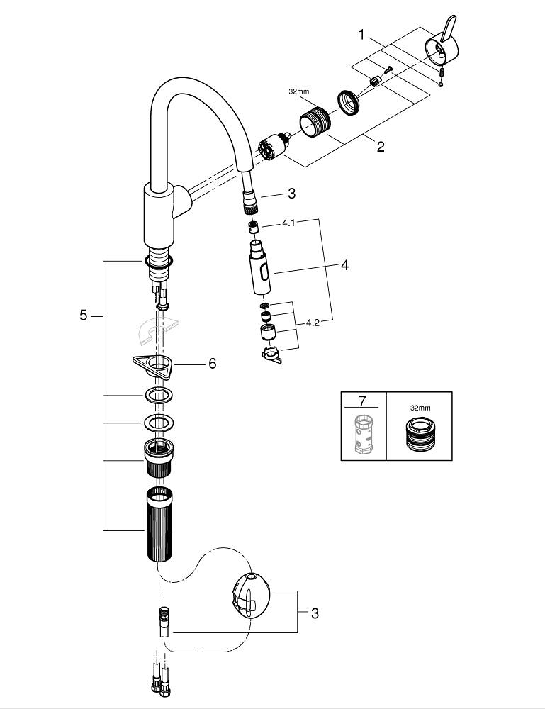 Grohe Get Mitigeur de cuisine - douchette extractible à double jet - noir mat